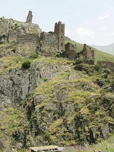 Rises above the road, where Argun gorge becomes narrower, before opening the gaze of travelers Shatili.
