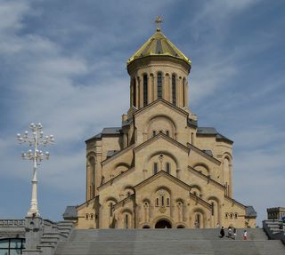The majority of believers belong to ethnic Georgians, the Georgian Orthodox Church. Religion occupies a large part in the lives of Georgians, this evidence of a large number of temples, ancient and newly built. All are landmarks, men should be in the pants.