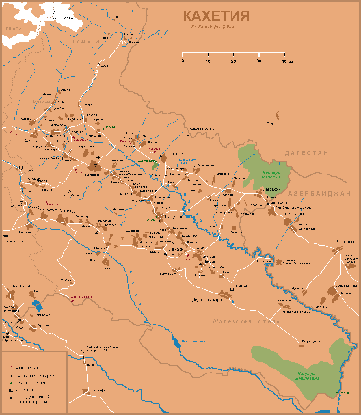 The tourist center of Sighnaghi offers good tourist maps of all regions of Georgia. Also get to tour in Kakheti remote areas, such as the cave monastery David Gorecha. There I was able to visit another in 2008.